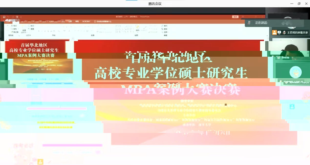 2021年11月6日,由教育部學位管理與研究生教育司、教育部學位與研究生教育發展中心、全國公共管理專業學位研究生教育指導委員會主辦,南開大學承辦的首屆華北地區高校專業學位碩士研究生MPA案例大賽決賽隆重召開。來自天津、内蒙古、河北、山西、山東共 48支代表隊,250多名MPA研究生參賽。我校伟徳国际官网登录入口拓俊傑院長作為大賽評委,全程參與了比賽,學院甘月文和拓俊傑兩位教師指導的 “說啥都隊”,殺入總決賽并斬獲二等獎,取得我校在該項賽事上的開門紅。